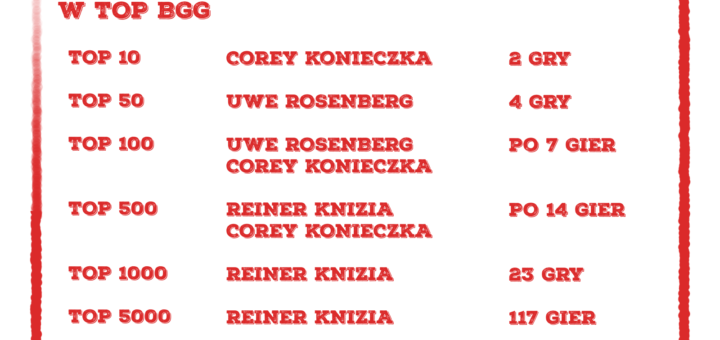 Kolejna statystyka, którą wrzucałem wcześniej na Facebooka. Który projektant jest najlepszy? Spojrzałem na to nie pod kątem jednej najlepszej gry, ale tego, czyje nazwisko pojawia się na szczycie rankingu BGG najczęściej. Ciekawostka – dr....